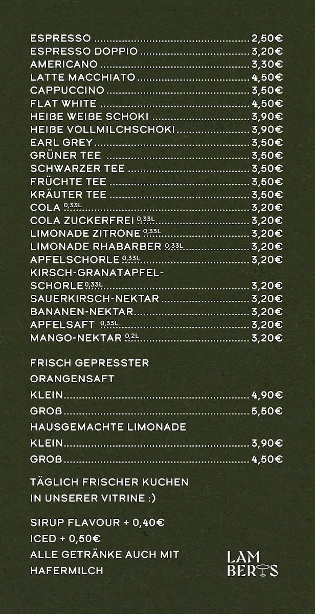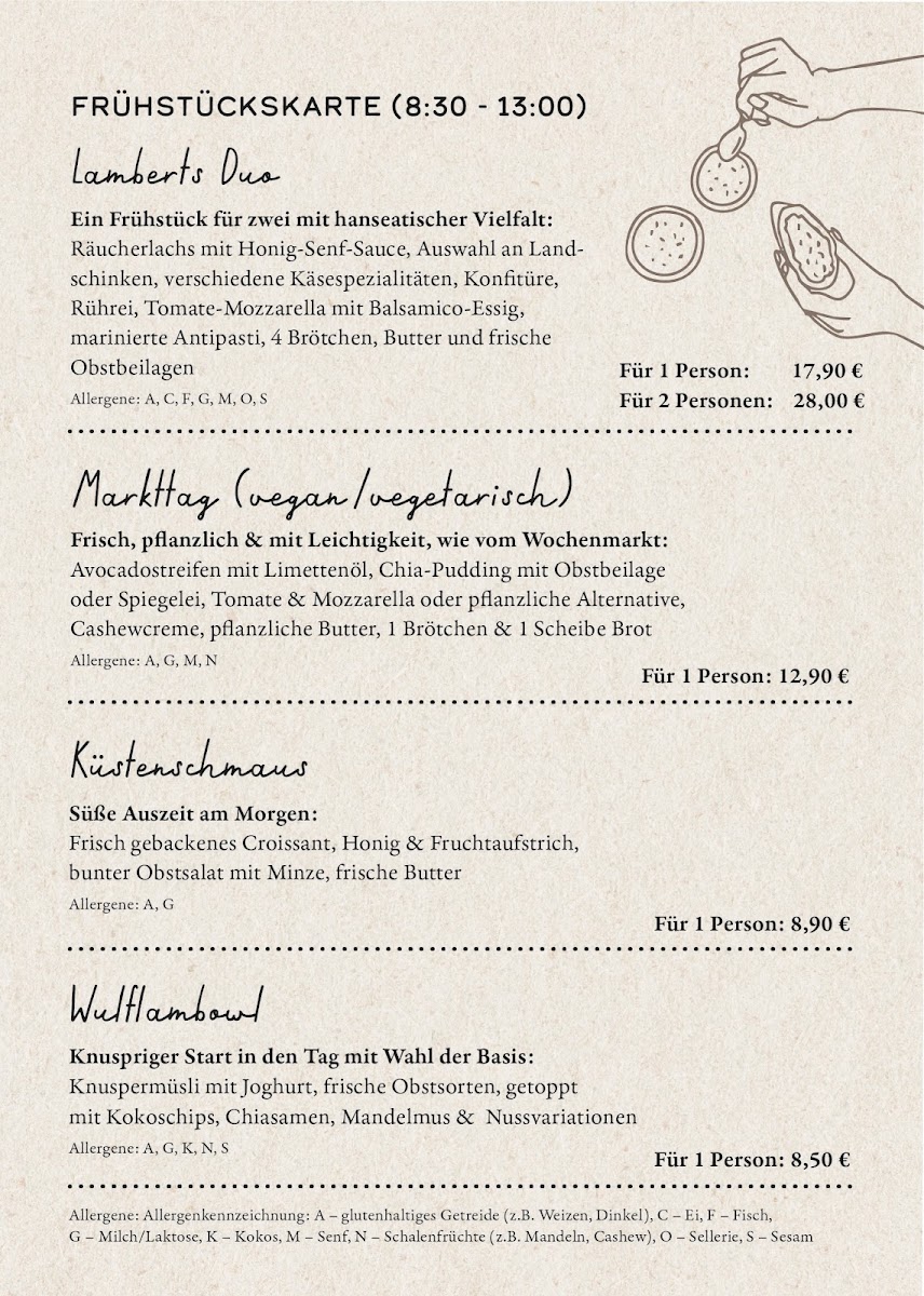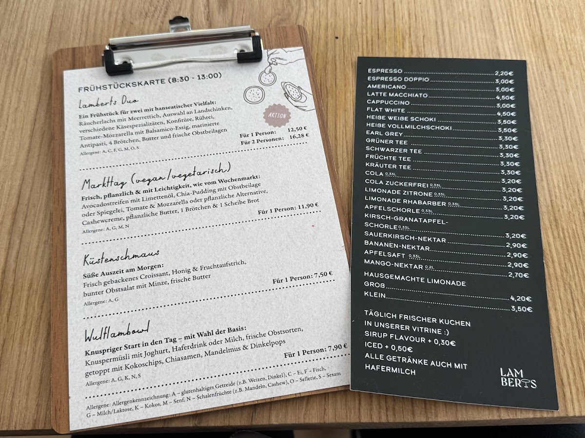 Welcome to Lamberts, a delightful café nestled in Stralsund at Ossenreyerstraße 49B. Known for its warm atmosphere and exceptional service, Lamberts invites you to indulge in a memorable dining experience. As you step inside, you'll immediately be greeted by the enticing aroma of freshly brewed coffee and homemade cakes.